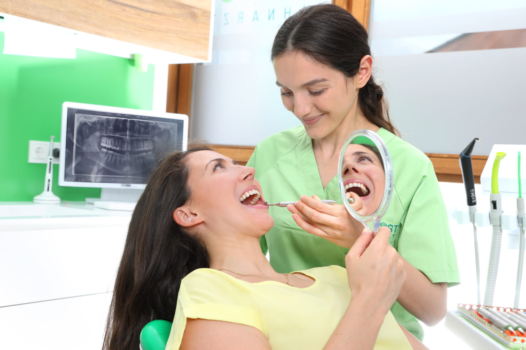 Zum anderen tragen wir durch die Nachsorge und regelmäßige professionelle Zahnreinigungen wirkungsvoll dazu bei, eine erneute Parodontose-Bildung zu verhindern. Bei regelmäßigen zahnärztlichen Nachkontrollen überprüfen wir Ihre Zahnfleischtaschen und den Entzündungsgrad und können bei Bedarf weitere Maßnahmen durchführen.