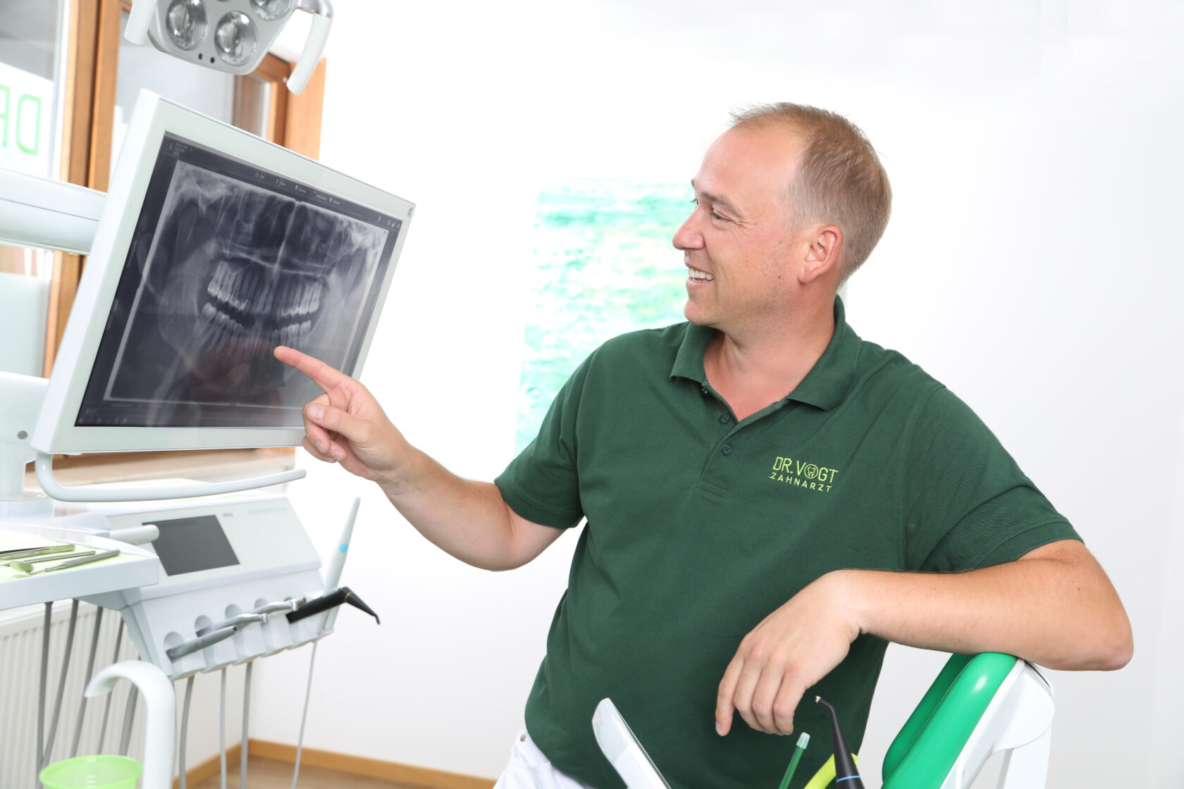 Neben der Sichtkontrolle ist das Röntgen eine wichtige Maßnahme, um den Zustand Ihrer Zähne zu beurteilen – sowohl zur Diagnose als auch zur Verlaufskontrolle. Wir bieten Ihnen in unserer Praxis digitales Röntgen auf dem neuesten Stand der Technik an, mit dem wir nicht nur Bilder von einzelnen Zähnen oder bestimmten Teilen des Kiefers machen, sondern auch eine sogenannte Panoramaaufnahme anfertigen können. Digitale Röntgenaufnahmen helfen uns u. a. bei Wurzelbehandlungen, beim Einsetzen von Kronen, bei der Behandlung von Parodontitis oder bei der Zahnextraktion. Auch die Kariesbehandlung wird durch digitales Röntgen erleichtert, da erkrankte Stellen so früher erkannt werden, als dies bei einer Untersuchung des Mundraums von außen möglich ist.